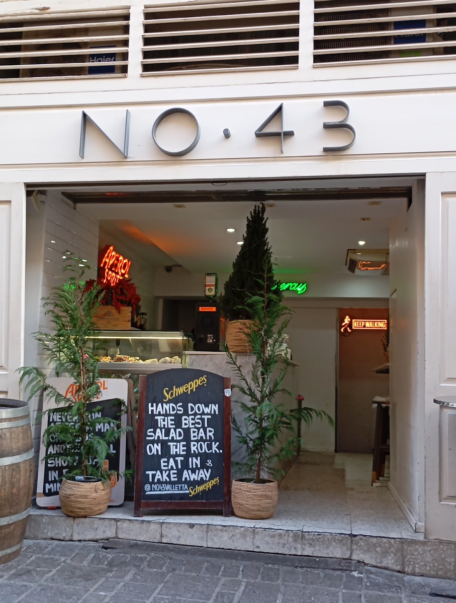 b>the service at No. 43 is equally commendable. Guests have reported genuinely friendly staff who are eager to help and accommodate requests, which many have praised during their visits. One patron described her experience in such a lovely way, noting how the bartender even offered her a complimentary espresso martini after her initial praise—a heartwarming act that certainly leaves lasting impressions.For those in search of beverages, No. 43 doesn’t disappoint. Amazing cocktails and fresh, invigorating coffee are just the beginning. Many customers find themselves drawn back for a second round, with the delightful drinks as a perfect complement to the cafe’s lively vibe. One visitor noted the affordable drink prices and playful atmosphere—ideal for enjoying a night out with friends or simply unwinding after a busy day of exploring Valletta's historic sights.